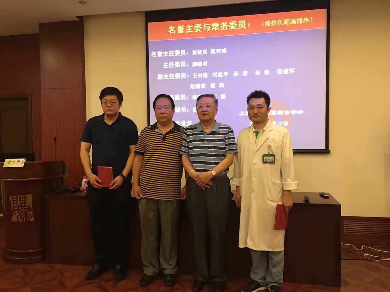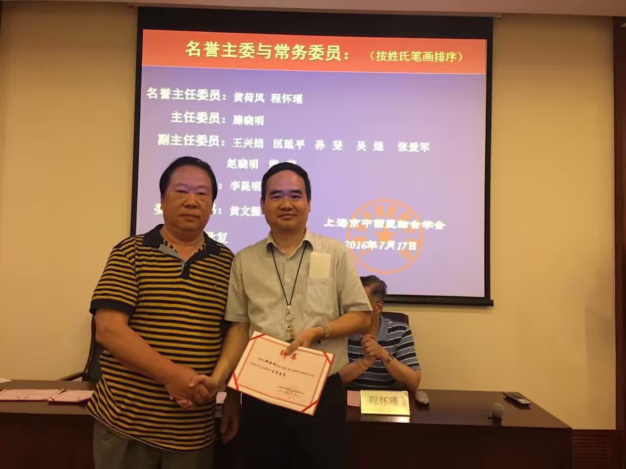 上海市中西医结合学会张友根秘书长和 第一届主任委员程怀瑾教授