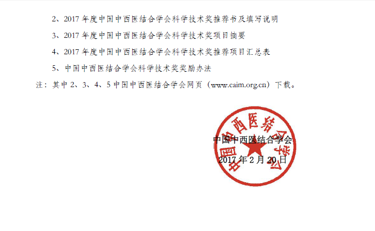 关于开展“2017年度中国中西医结合学会科学技术奖”推荐、申报工作通知