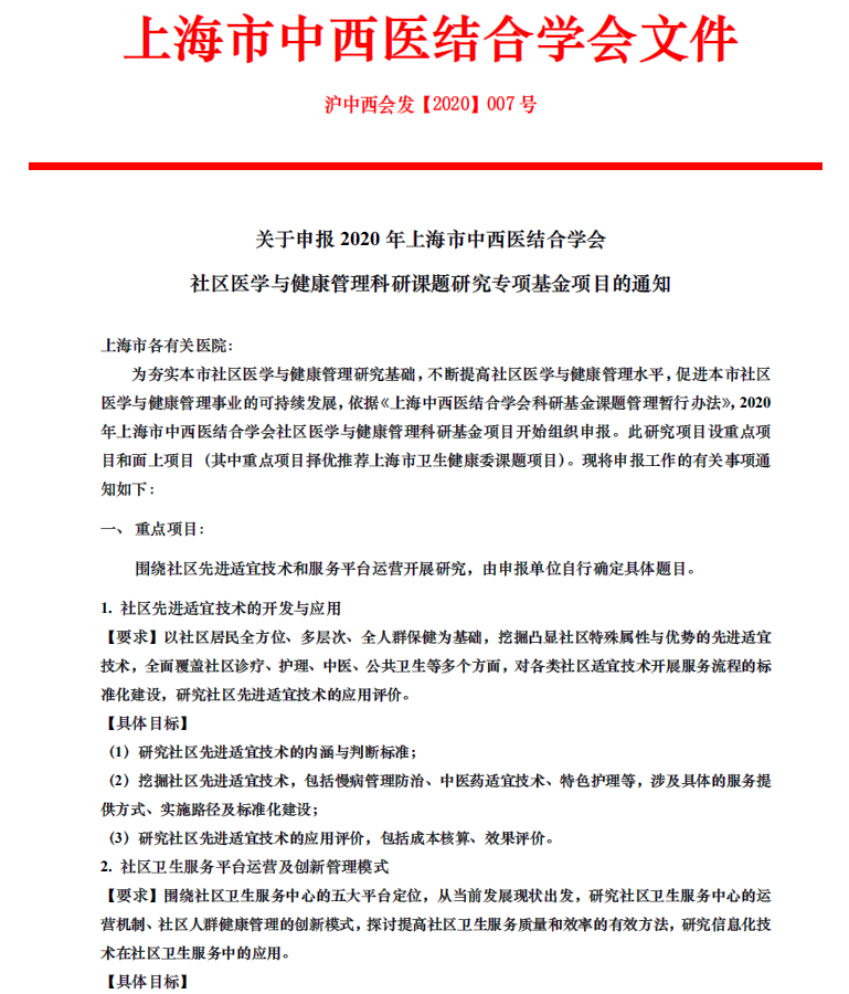 上一篇:2020年社区医学与健康管理科研专项经费通知