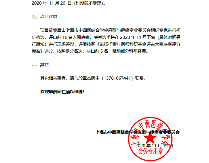 2020“诺扬杯”青年医师科研基金征集函