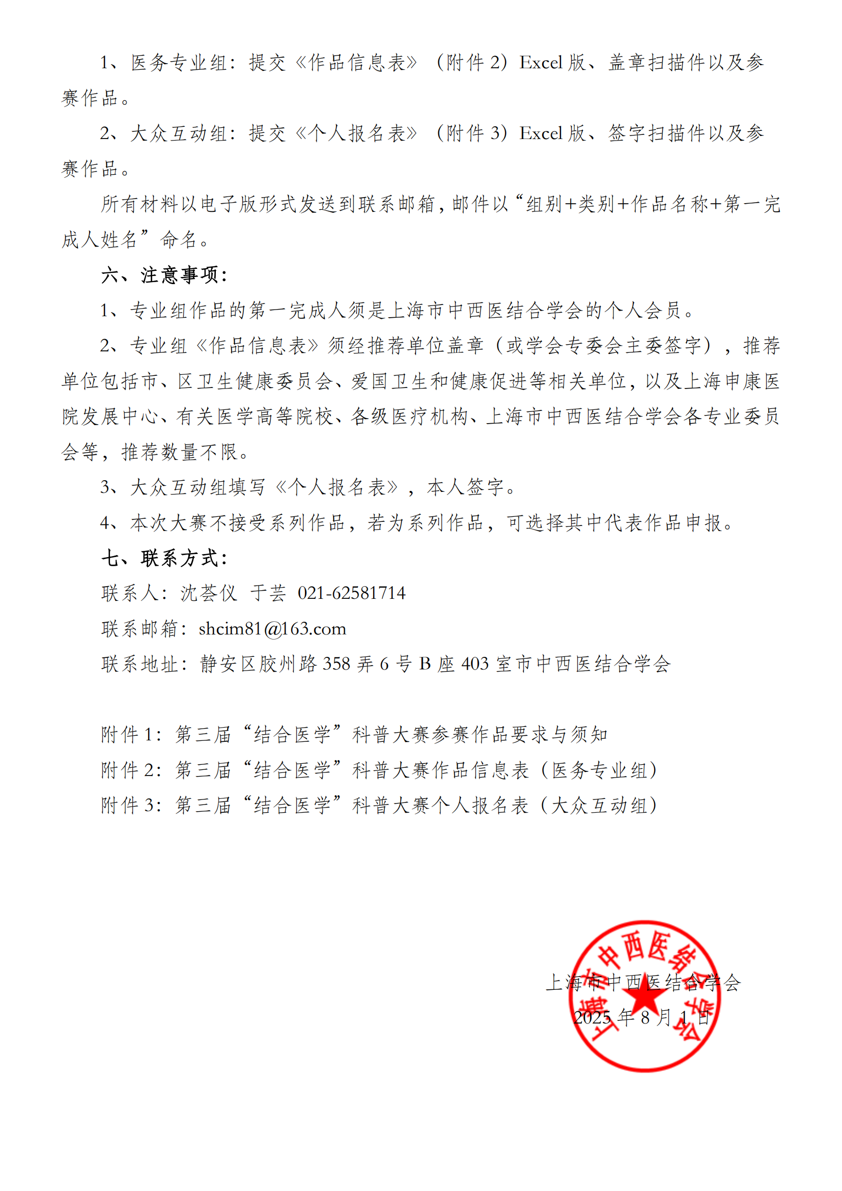 附件1:第三届“结合医学”科普大赛参赛作品要求与须知