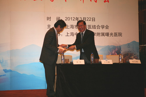 上海市中西医结合学会近日在上海希尔顿酒店举行了第一届循证医学专业委员会成立大会暨学术研讨会。中国中西医结合学会副会长、上海市中西医结合学会会长王文健教授、上海市中西医结合学会秘书长张友根出席会议。张友根秘书长宣读上海市中西医结合学会第一届循证医学专业委员会组成人员名单,由丁任等63名同志组成第一届循证医学专业委员会。周华同志任主任委员;丁任、于广军、王杰宁、刘华、阮龙德、杨永清、竺丽明、胡义扬、蔡定芳等同志任副主任委员;王唯坚、赵咏芳委员兼秘书。王文健会长为正副委员、秘书颁发聘书。