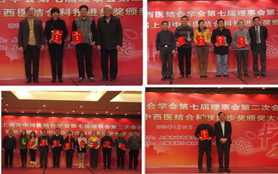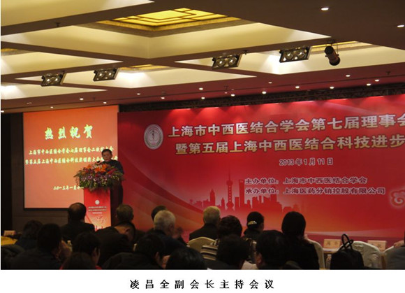 第七届上海市中西医结合学会理事会第二次会议于2013年1月11日下午在上海宾馆隆重举行,第七届上海市中西医结合学会理事会理事、上海市中西医结合学会高级荣誉会员、上海市中西医结合学会各专业委员会主任委员等100余名代表出席本次大会。上海市中西医结合学会高级荣誉会员:沈自尹院士、施杞教授、赵伟康教授、上海市科学技术协会正局级巡视员钱之广、学术部王春明副部长应邀出席会议。