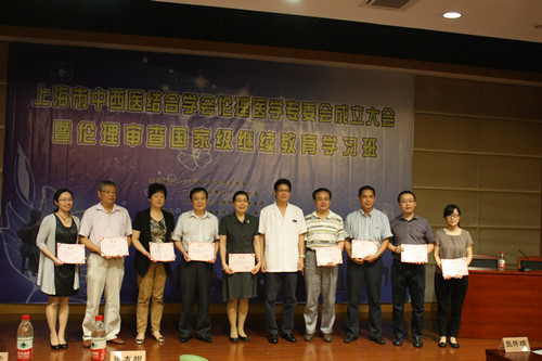 第一届上海市中西医结合学会伦理医学专业委员会成立大会于2013年9月11日在上海中医药大学附属曙光医院隆重举行,来自本市各级医疗单位及、各高等医学院校近60名代专家表参加了会议。出席会议的嘉宾有,上海市中医药发展办公室张怀琼副主任、上海市中西医结合学会副会长、曙光医院周华院长、上海市中西医结合学会张友根秘书长等。