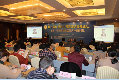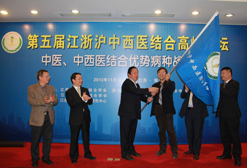 由江浙沪两省一市中西医结合学会联合举办的第五届江浙沪中西医结合论坛,于2013年11月16日在江苏省南京市隆重举行,本次论坛的主题为中医、中西医结合优势病种战略研讨,并表彰第二届江浙沪中西医结合学会优秀青年人才奖和学会工作贡献奖。中国中西医结合学会、江苏省卫生厅、江苏省中医药局以及两省一市中西医结合学会相关领导出席了论坛,来自江浙沪近200名专家学者代表出席会议。