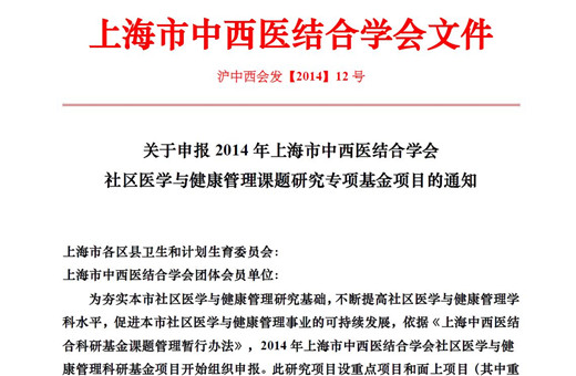 申报2014社区医学研究专项基金项目通知