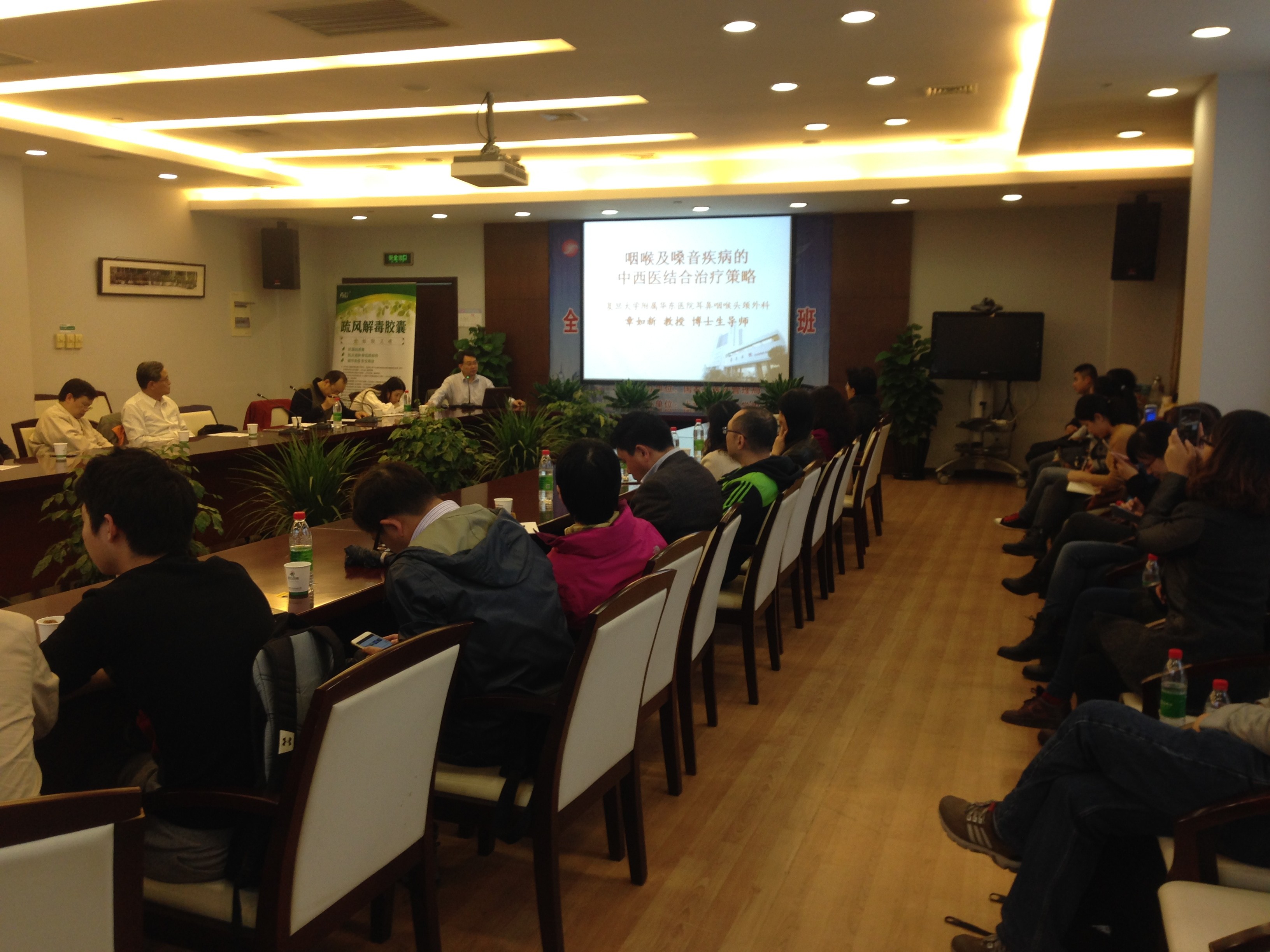 2015年11月20日上海市中西医结合学会耳鼻咽喉科专业委员会在上海中医药大学附属曙光医院学术报告厅举办了嗓音专题学术研讨会。复旦大学附属华东医院耳鼻咽喉科主任章如新教授、同济大学附属同济医院耳鼻咽喉科葛荣明主任、第二军医大学附属长征医院耳鼻咽喉科范静平教授、交通大学仁济医院头颈外科王家东主任、第九人民医院耳鼻咽喉科王佩华主任、上海中医药大学附属曙光医院耳鼻咽喉科张治军主任主持了大会并作了专题报告。作主题报告的还有上海中医药大学附属第七人民医院耳鼻咽喉科黄卫主任、奉贤中医医院耳鼻咽喉科马胜民主任、复旦大学附属五官科医院李艳青博士后、第二军医大学附属长海医院温武教授及上海中医药大学附属龙华医院刘畅医生。各位与会专家就喉嗓音疾病的多个临床热点、中西医结合诊治经验等方面作了精彩报告与交流。章如新教授主讲的咽喉及嗓音疾病的中西医结合治疗策略,从中西医治疗理念诠释了嗓音疾病诊治的临床特点。葛荣明教授介绍了复杂食管异物诊疗,全面展示了食管异物的多样性、复杂性及临床诊治经验。范静平教授主讲了喉部疾病术后的嗓音训练,详细讲述了如何进行术后嗓音训练,完善手术后续治疗,改善患者嗓音质量。长海医院温武教授及刘畅医生就声带麻痹的诊治进展,介绍了声带麻痹的病因及声带麻痹的基础与临床最新研究成果。李艳青博士后总结了全国名老中医张重华教授喉白斑的中医药治疗的临床经验。黄卫主任主讲了中医药在声带息肉围手术期的应用,马胜民主任主讲了慢性喉炎的中西医治疗。最后,张治军主任结合临床工作经验,介绍了经皮气管切开术的并发症,彰显了手术方式选择的重要性,给人以深刻印象。与会专家对嗓音疾病的中西医结合与精准治疗进行深入探讨,提高了中西医结合治疗喉嗓音疾病的理念与共识,学术氛围浓厚,交流气氛活跃,会议获得圆满成功。