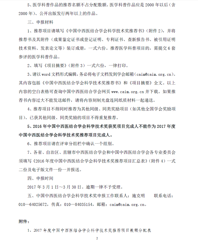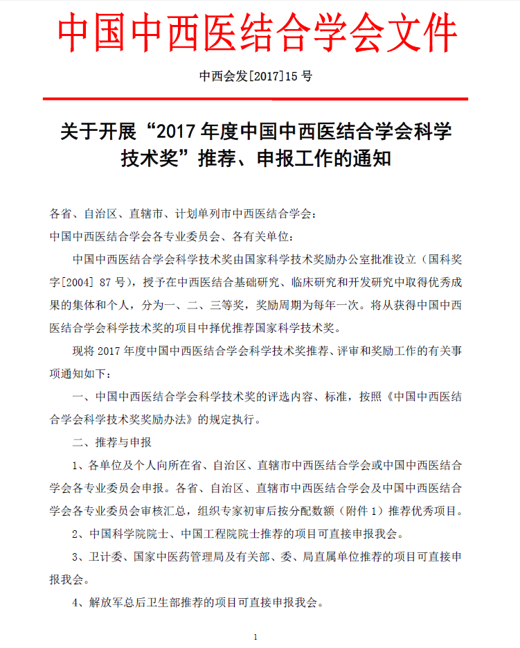 关于开展“2017年度中国中西医结合学会科学技术奖”推荐、申报工作通知
