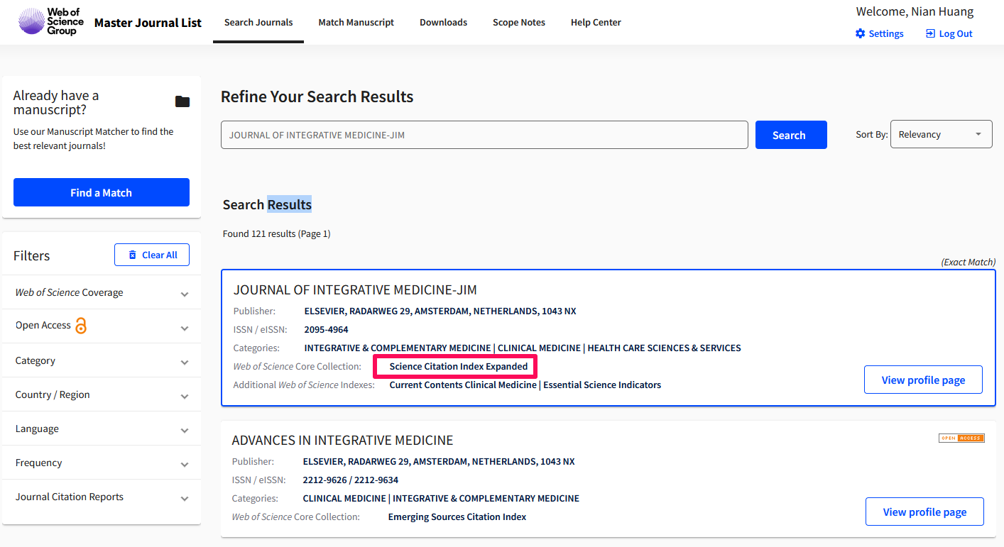 据科学引文索引(SCI)评估和出版机构科睿唯安(Clarivate Analytics)发布的消息(https://mjl.clarivate.com/home),《结合医学学报》(Journal of Integrative Medicine)于2019年12月被收录为SCI期刊。这是上海市第一本中西医结合SCI期刊。