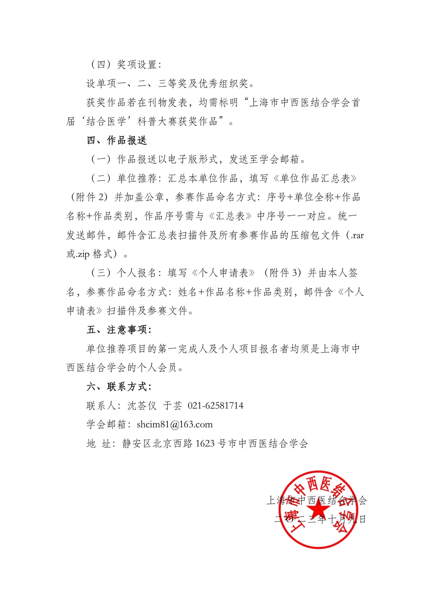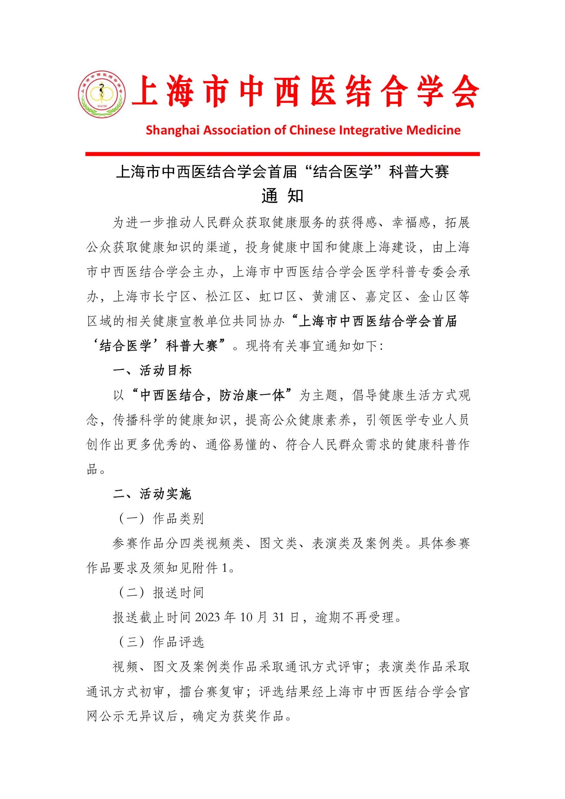 附件1: 上海市中西医结合学会首届“结合医学”科普大赛参赛作品要求与须知