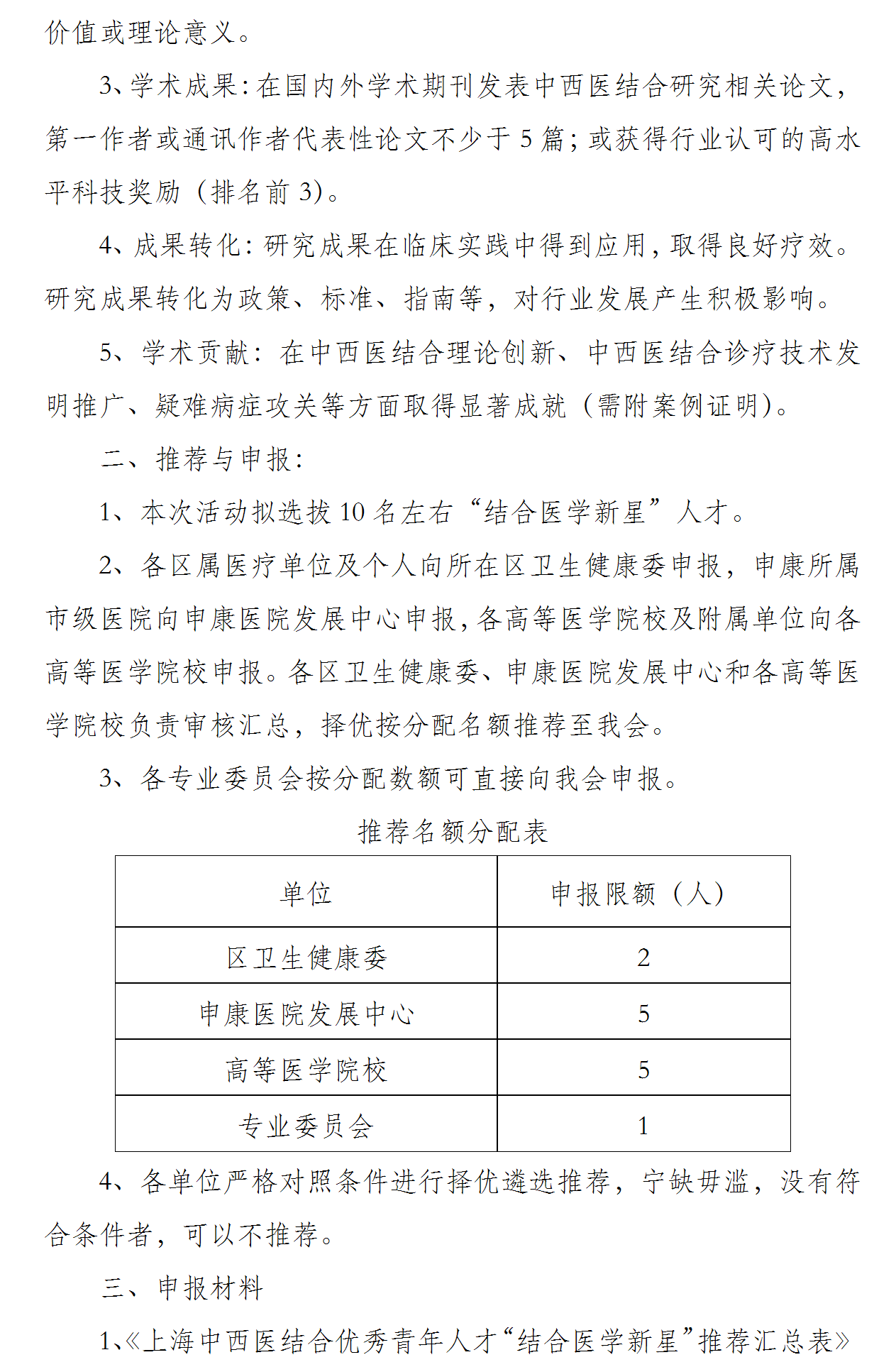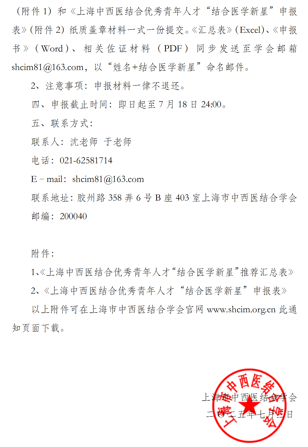 2025年上海中西医结合优秀青年人才“结合医学新星”推荐、申报工作通知