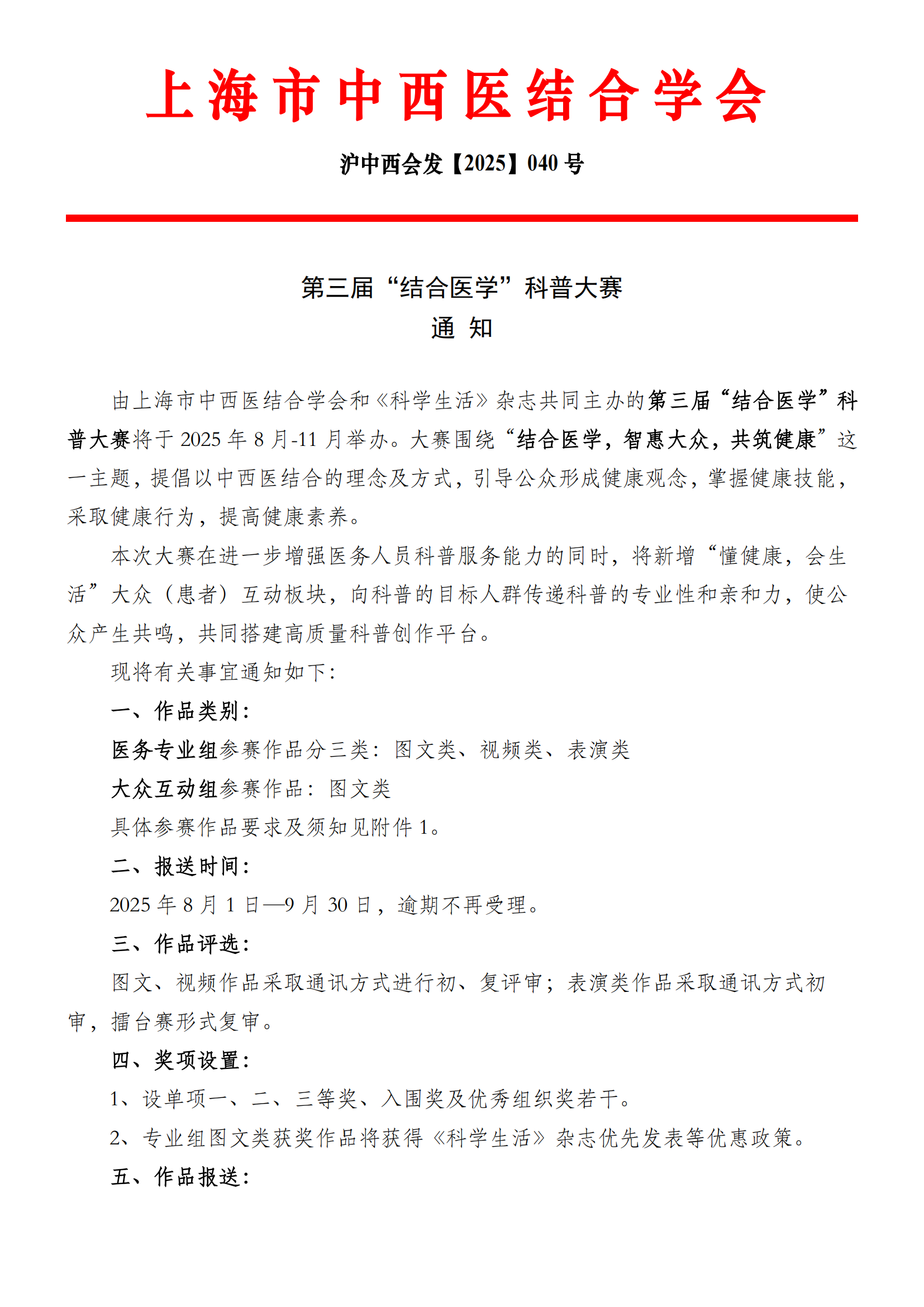 第三届“结合医学”科普大赛通知