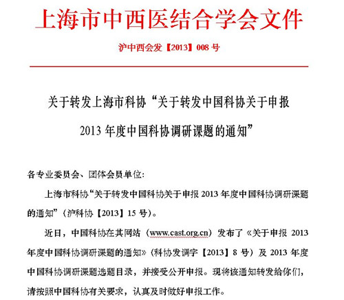 关于转发中国科协关于申报2013年度中国科协调研课题的通知