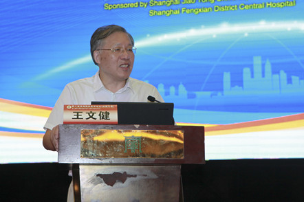 左起六院奉贤分院院长程英升、学会会长王文健、奉贤区卫计委主任宋志红、